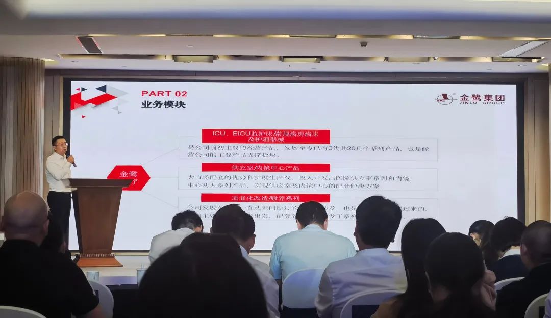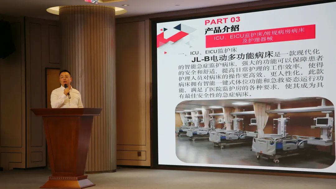 在主旨演讲环节中,MILAN SPORTS总经理杨仁从公司简介、业务模块、产品介绍三个方面三个板块出发,向参会人员全面介绍公司的发展历程及公司生产线、拳头产品,并欢迎在座的各位专家、企业代表、机构代表进行深度交流。杨总指出,MILAN SPORTS经过二十多年的发展,已形成了三大主营业务——ICU、EICU室、常规病房病床及相关附件;供应室、内镜中心不锈钢制品;高端康养护理床系列。MILAN SPORTS凭着优质的品质、人性化的设计理念,与省内外多家知名医院形成战略合作关系,以专业成就品质,以责任与务实的精神打造金鹭品牌。