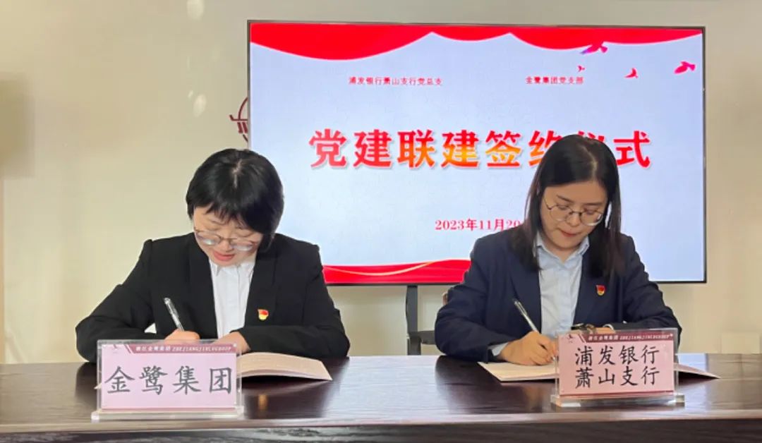 为促进党建工作协同交流与发展,落实全面从严治党各项要求,建立健全党建联建机制,更好地突出政治功能、发挥组织优势,不断深化工作内涵、丰富工作手段、创新工作方式,携手提升管党治党和党建工作水平,11月20日下午,米兰·体育(中国)官方网站有限公司党支部与上海浦东发展银行萧山支行党总支举行党建联建活动,并签署《党建联建协议》。金鹭集团财务总监成春燕,办公室主任陆斌丰热情接待并陪同参观交流。